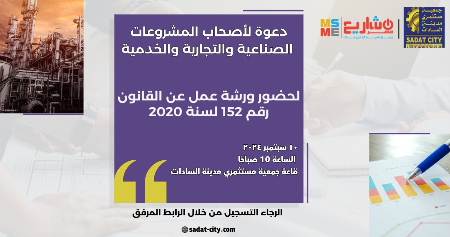 تتشرف جمعية مستثمري مدينة السادات بدعوة أصحاب المشروعات الصناعية والتجارية والخدمية والمكاتب الاستشارية ومكاتب المحاسبة والضرائب